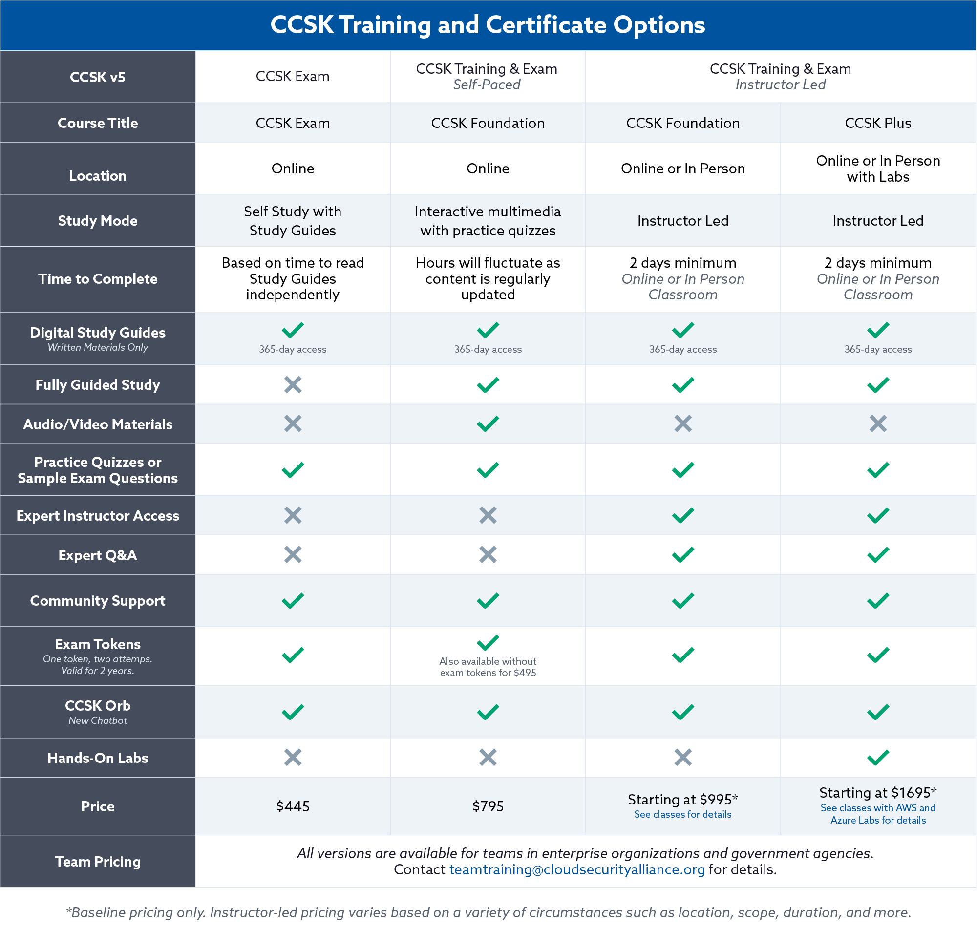*Note that CSA Corporate Membership includes discounts on the CCSK and team training credits.